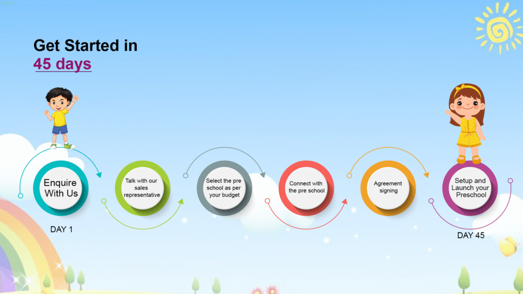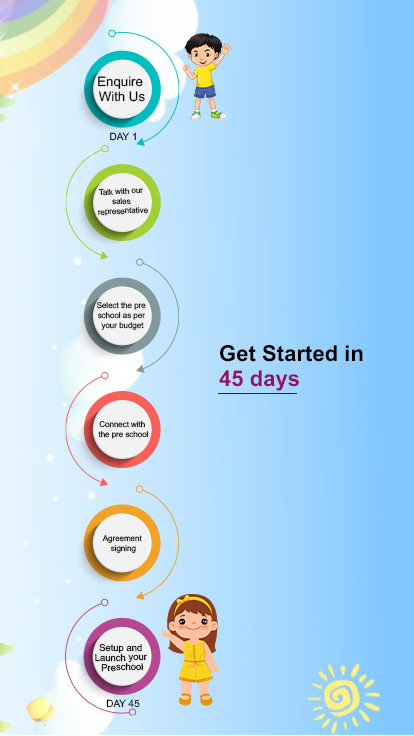 We help you set up, manage, and grow successful preschool franchises in  your city with proven business models and end-to-end support.
